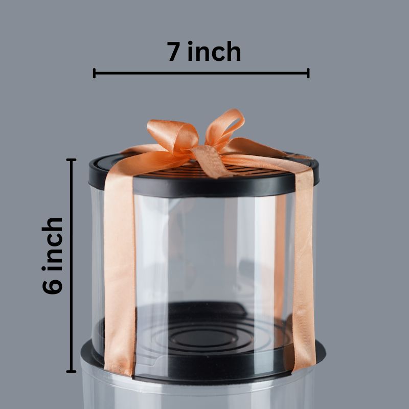 Showcase your half-kg cakes or small hampers in style with our 7x7x6 inch Clear Cake Box. Made with a crystal-clear PET body and a sturdy HIPS base and top, this box enhances your presentation while providing reliable support. Each set includes 10 boxes, requiring simple assembly with a 75-inch ribbon (not included). Ideal for bakeries, gifting professionals, and event packaging.