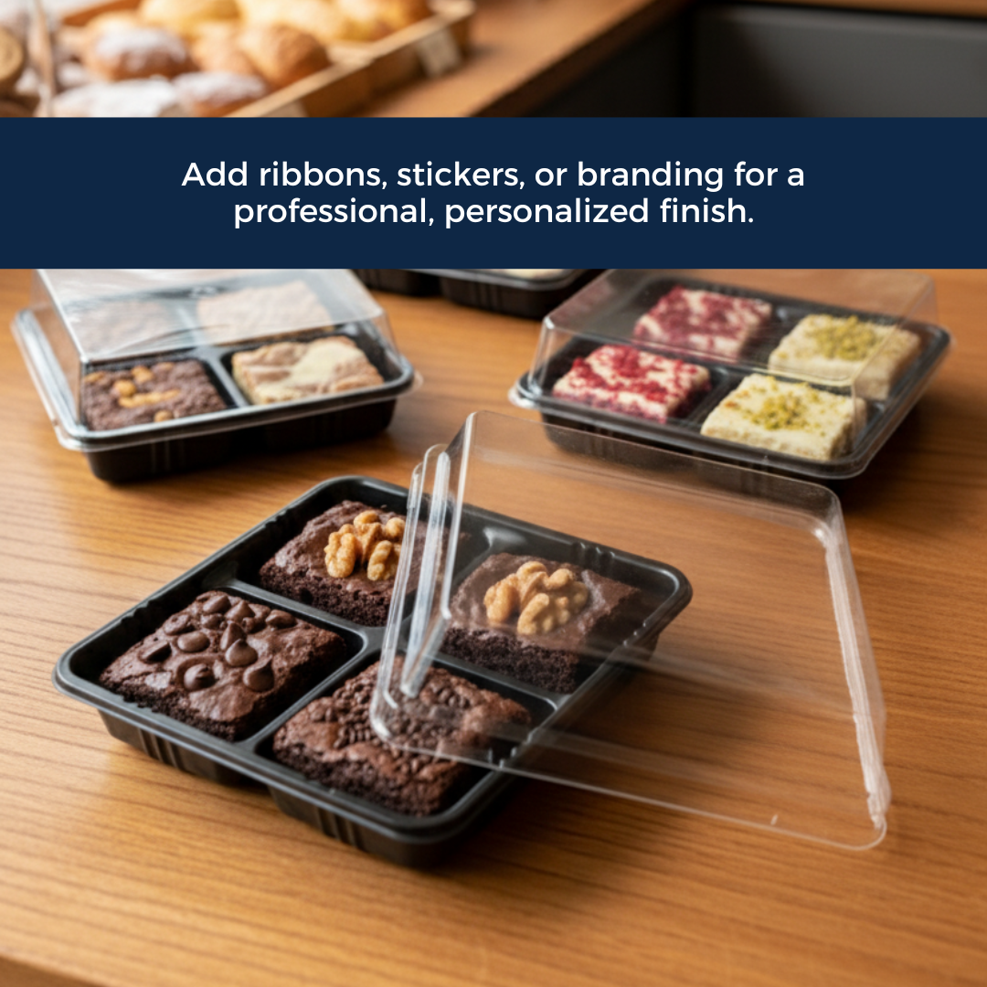 Perfect for 4 mini brownies, this tray keeps each piece fresh while making them look irresistible.