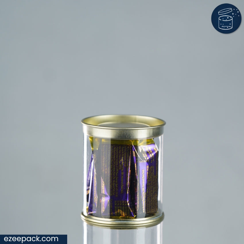 The 175 ml clear tin jar is designed to meet your versatile packaging needs with style. Measuring Diameter 2.5 inches, Height 3 inches, this jar is crafted from durable, 350 microns clear PVC plastic, providing an unobstructed view of its contents. It's perfect for selling small quantities of cookies, elaichi, or similar dry fruits and sweet treats. The food-grade material ensures safety, while the very high gloss finish enhances its aesthetic appeal, making it ideal for gifting or displaying on a shelf. The tin lid seals tightly to keep the contents fresh and secure. With its medium size, it strikes the right balance between capacity and portability, making it suitable for both commercial sales and elegant gifting. This jar is not only functional but also adds an elegant touch to any space it occupies.
