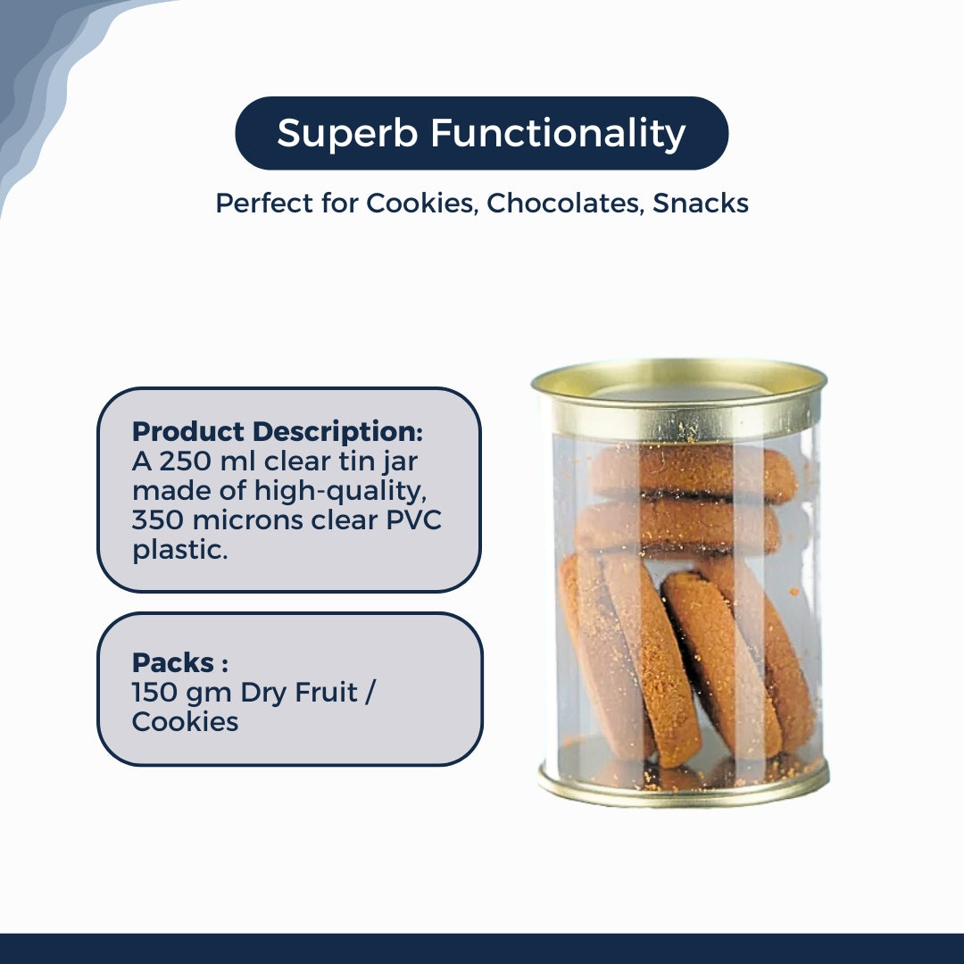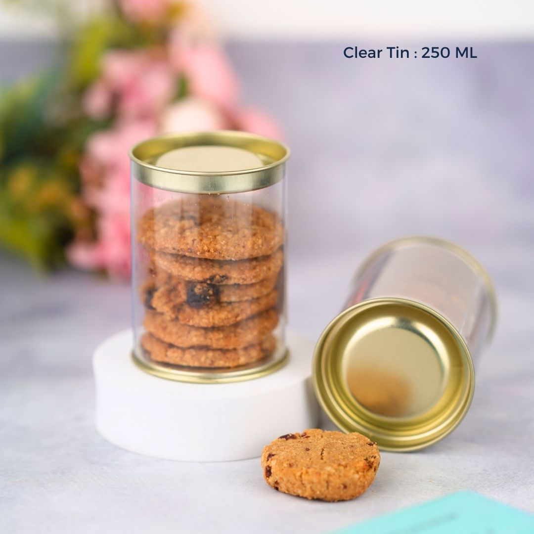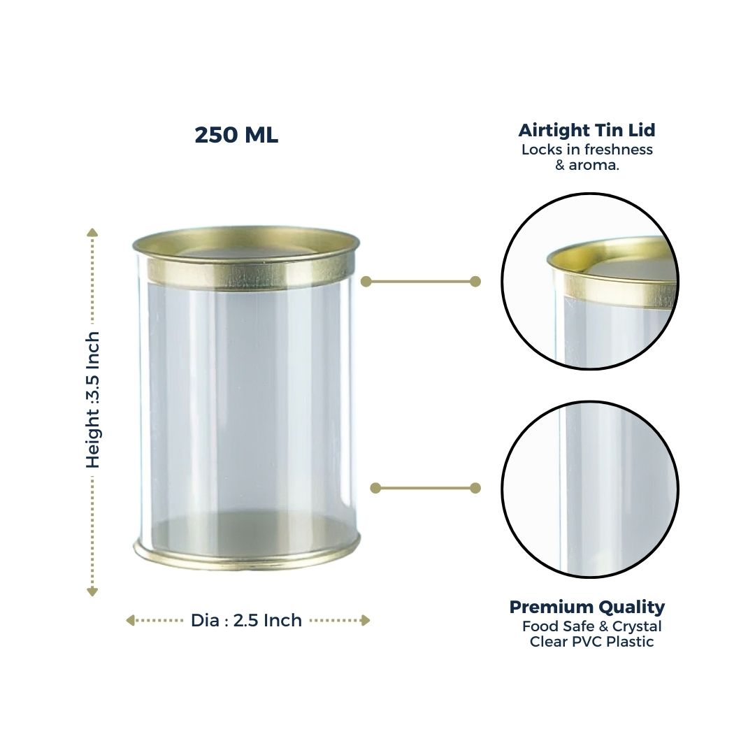 Transform your packaging game with Clear Tin, the innovative cylindrical jar that combines style and functionality. Available in sizes ranging from 250 ml to 1200 ml, these jars are crafted from transparent, non-toxic PVC material and feature sturdy metal tin ends. The bottom end is seamed and non-removable, ensuring durability, while the top lid can be easily removed and securely put back on.