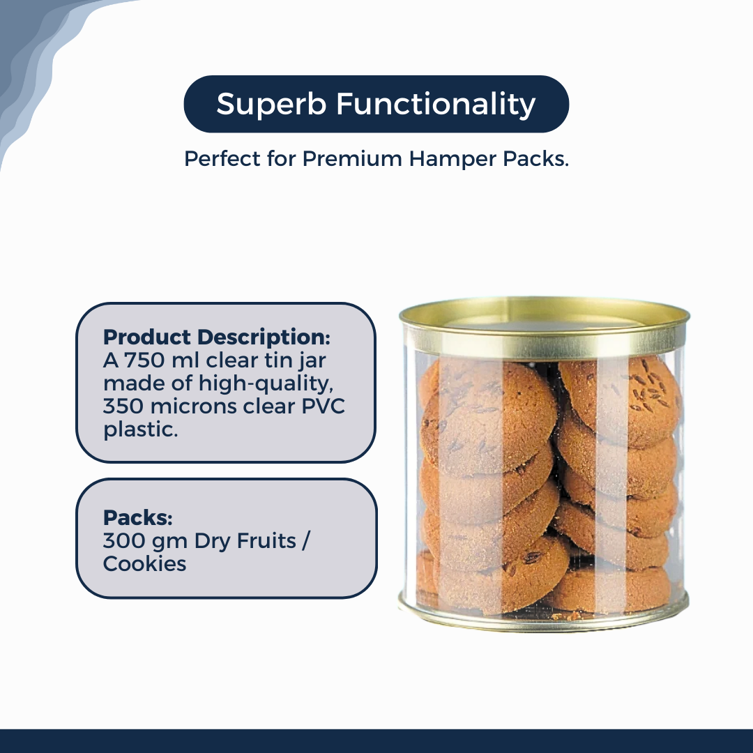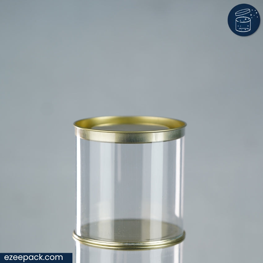Transform your packaging game with Clear Tin, the innovative cylindrical jar that combines style and functionality. Available in sizes ranging from 250 ml to 1200 ml, these jars are crafted from transparent, non-toxic PVC material and feature sturdy metal tin ends. The bottom end is seamed and non-removable, ensuring durability, while the top lid can be easily removed and securely put back on.